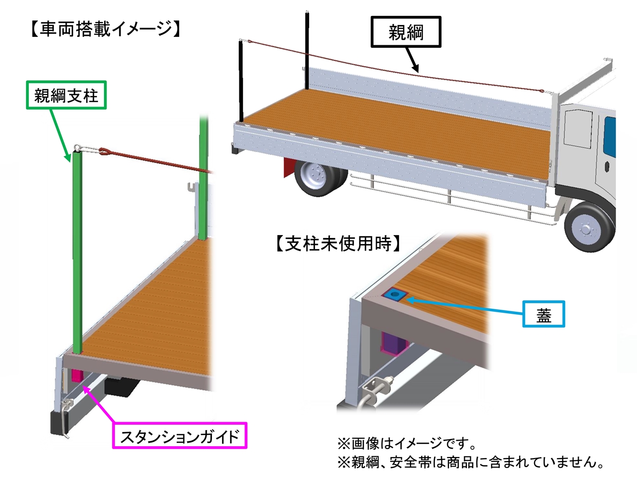 このカテゴリでは、当社のトラック架装パーツの中で特定のカテゴリには属さないが、トラックの荷台の運搬作業の効率化や、機能性、安全性、架装作業の効率化などを目的とした製品を取りまとめております。